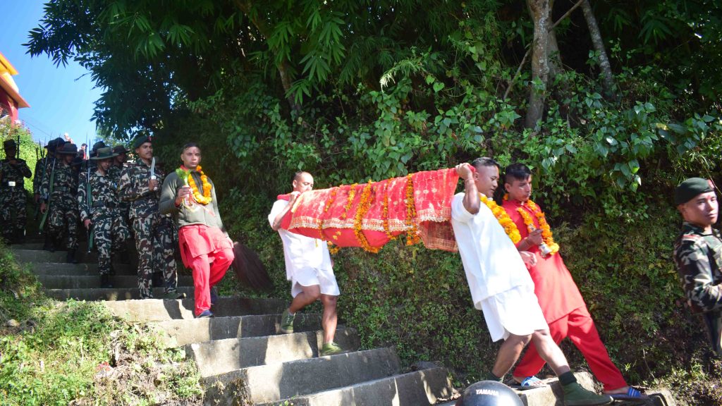 आज बिहानै ६:३० बजे उपल्लो कोट मन्दिरमा फुलपाती भित्र्याईएको र ९:२५ बजे नेपाली सेनाले देशैभर फूलपाती भित्र्याउने भएकाले कोटमन्दिरमा विधिवत पुजाआज गरिएको फूलपाती श्री श्री महर गण, घोडाबाँधेले गण लैजाने वडा नं ५ का अध्यक्ष ज्ञामनाथ कंडेलले जानकारी दिनु भयो भने वडा नं ६ का अध्यक्ष बृहस्पति शर्माले सँगै रहेका दुई कोटमन्दिरमा पालै पालो फूलपाती भित्र्याउने संस्कार अनुसार यो वर्षको नवदुर्गाको सप्तमीमा माथिल्लो कोटमन्दिरमा फूलपाती भित्र्याइकों जानकारी दिनुभयो। शर्माका अनुसार भाकल पुरा भएका र भाकल गर्ने दुवै थरिका भक्तजनहरु हजारौको संख्यामा आउने र दुवै कोटमन्दिरको श्रद्धा पुर्बक पुजाआजा गर्ने गरेका छन्।
